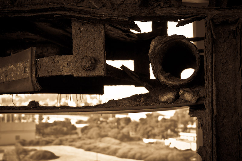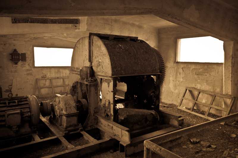 Ci lavoravano i carcerati della colonia penale di San Bartolomeo. Li immaginavo salire per quelle erte scale oggi assai malridotte e percorrere i corridoi fino ad arrivare al macchinario che vedo spuntare proprio di fronte a me da un buco sul muro.