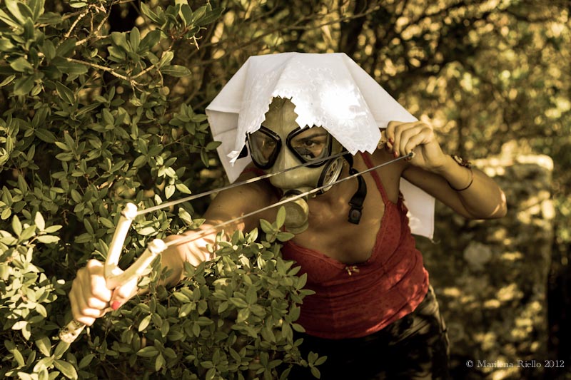 La visione delle due figure le aveva ridato speranza di non essere l’unica sopravvissuta, ma non sapeva fino a che punto la AMC potesse spingersi e l’istinto le diceva di non fidarsi di nessuno. Sentì dei rumori e vide apparire un individuo, sicuramente di sesso femminile, ma che portava in viso una maschera anti-gas. Rimase immobile ad osservarla. La donna era armata di una fionda e il suo aspetto guerriero la colpì. Entrò nell’antico edificio dalla porta bassa e stretta ed uscì con delle apparecchiature. Erano le stesse che usava anche lei per comunicare con la base. Era sicuramente, anche lei, dei rivoltosi.