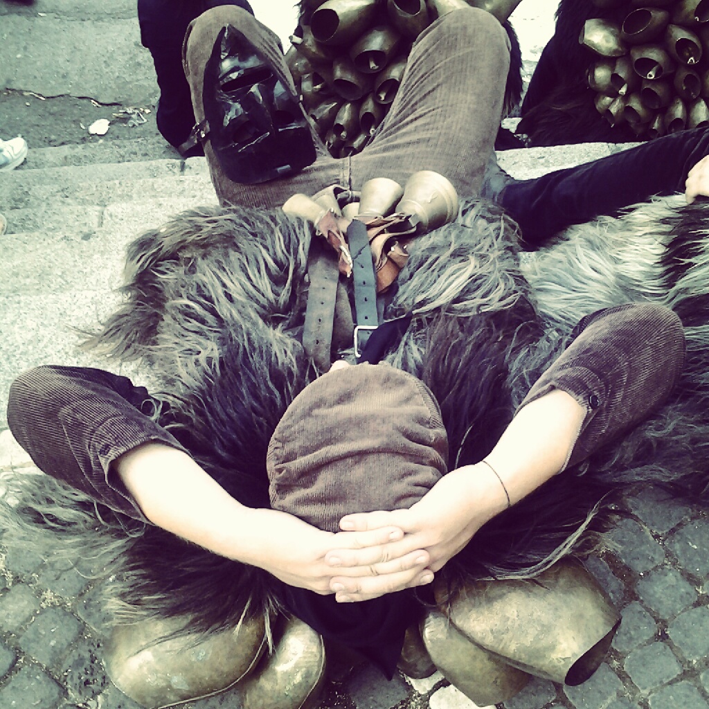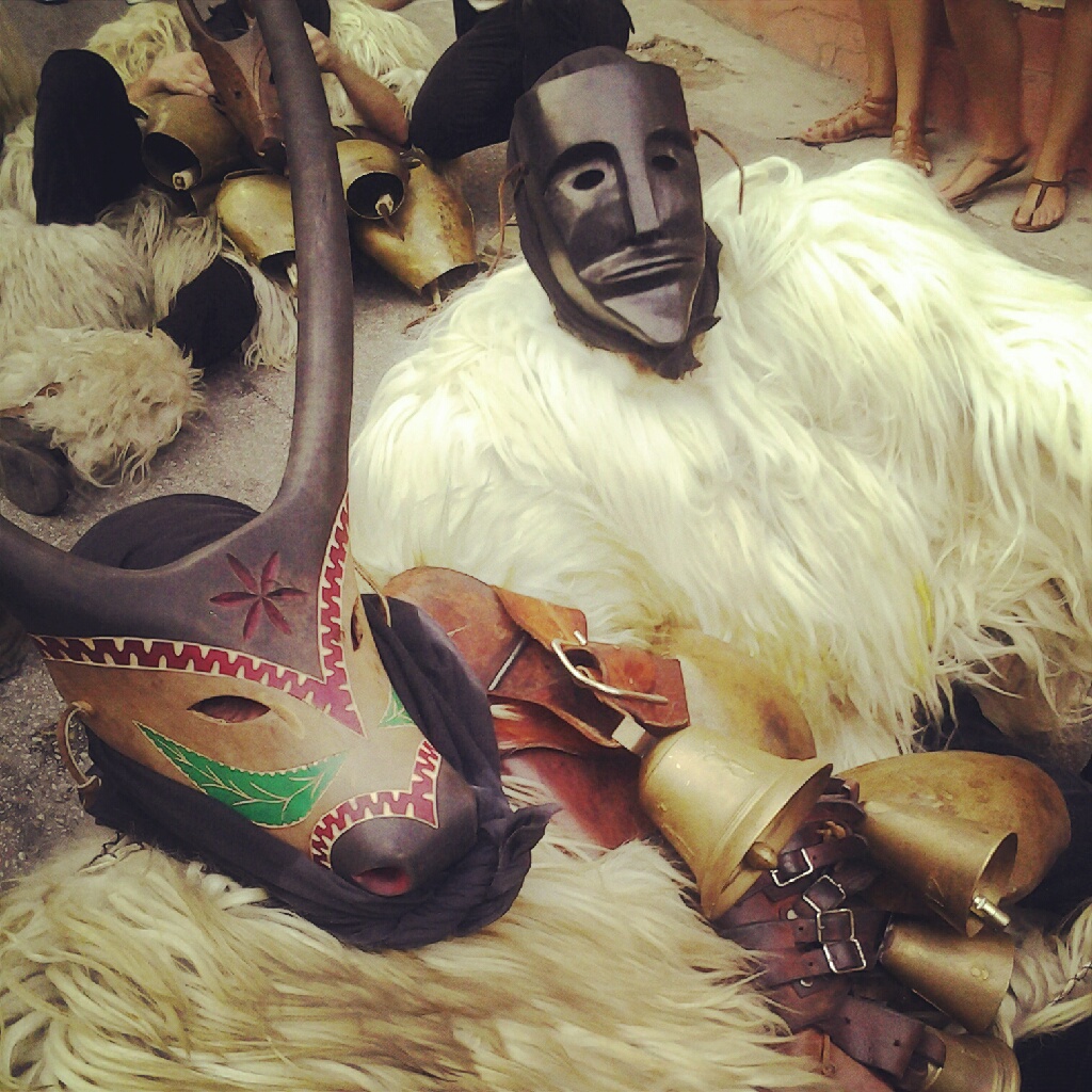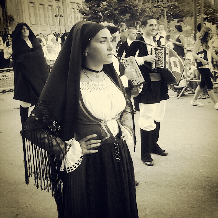Arrivate alla piazza, ci siamo fermate ad aspettare che arrivassero tutti i gruppi e così siamo state circondate dai mamuthones che cercavano di sdraiarsi e prendere respiro dal grande caldo. Tu immagina il 6 di agosto questi uomini ricoperti dalle pellicce delle pecore e in viso la maschera… Erano sfiniti… Si sono buttati a terra, dopo aver poggiato le maschere nelle vicinanze. Che strano vedere, dentro quegli esseri paurosi della mia fanciullezza, degli esseri umani normali. Qualcuno di loro ci faceva domande, gli issohadores ci lanciavano i lazzi… Mi hanno preso due volte mamma… Lo sai cosa vuol dire? Stavolta qualcuno forse ha ascoltato le tue preghiere… Stavolta forse mi “coio”!!!