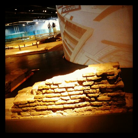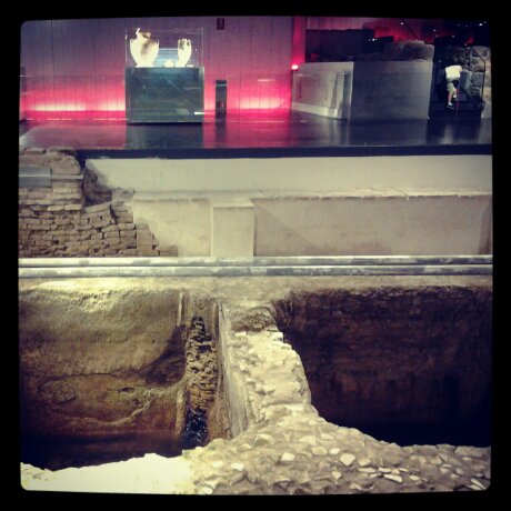 Entro quindi nel museo chiamato Antiquarum de Sevilla. All’interno, fra pareti al neon che sparano colori sgargianti, alternando fucsia a blu elettrico e similari, sono esposti gli antichi resti di quella che doveva essere una fabbrica di una pasta poco pregiata. Il dominus, a quanto sembra, doveva essere un uomo facoltoso, forse un commerciante di materiali liturgici cristiani, sotto l’infllenza di Bisanzio. Probabilmente gli scambi commerciali si effettuavano attraverso il porto di Ispali, che in quel periodo era più vicino a Siviglia. Sì, perchè, dal ritrovamento di scheletri e squame di pesci, si pensa che prima la costa fosse parecchio vicina. Queste info derivano dalle colonne di informazioni disseminate nel luogo, che mi preoccupo di interpellare, vista l’assenza imperdonabile delle mie amate audioguide.