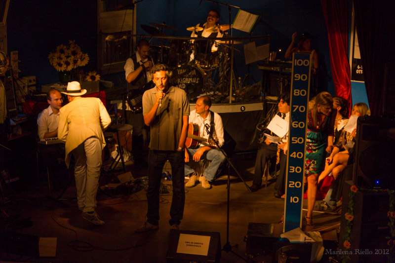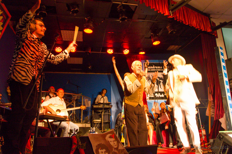 Passiamo dunque a tirare le somme della prima giornata di questo fantastico festival. I concorrenti hanno brillato incontestabilmente per bravura, ma soprattutto hanno dimostrato un fervente coraggio e senso di apprezzamento ed Sandremo 2012 5accettazione del ridicolo che fa loro onore al di sopra di ogni eventuale critica musicale avvalorata da nozioni tecnicheggianti. Hanno spaziato dalla fedele interpretazione di Vasco Rossi, che ormai pensa di essere talmente immortale da non prendersi più la briga di cantare e ritiene che ogni suo prodotto sia un’espressione artistica di incommensurabile valore, sia essa un cantato, o un rutto o una scorreggia, a “Eri piccola così” di Buscaglione, o “Spunta la luna dal monte” di Bertoli & Tazenda, o “Dieci ragazze per me” del povero Battisti… Non sono mancati gli ospiti d’onore con l’esuberante Pille che ha esordito con “Rock’n’roll robot” per finire con l’ormai incontestabile cult sonoro “Ti amo quando bevo” aka T.A.Q.B., che ha fatto entrare in panico la folla entusiasta, chiudendo la serata in modo degno del più “scanzonato” Sanremo…
