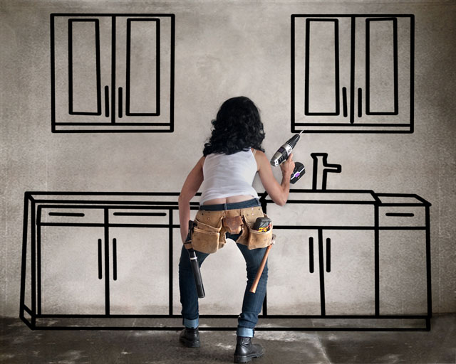 Insomma, la serie “She can leap tall buildings” della fotografa californiana parla della donna di oggi, quella che riesce a dividersi fra il lavoro e la casa, quella che alterna una riunione di lavoro in tailleur ad una sessione idraulica nel lavandino intasato, quella che corre in palestra in pausa pranzo, passa a fare la spesa e torna a casa a preparare la cena.