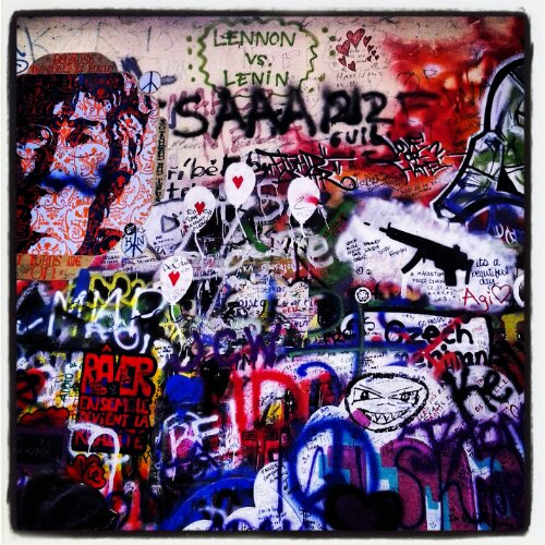 La forma a C di questa piazza, però, mi fa perdere l’orientamento e finisco per perdermi e fare il giro dell’asino più volte per il quartiere, fino a che, finalmente, riesco a trovare la strada per la piazza del Gran Prevosto dove si trova il famoso muro dedicato a John Lennon, il muro simbolo della dissidenza pieno di graffiti che parlano di pace, amore ed affermano il diritto alla libertà e l’inutilità della guerra. Mi fermo ad ammirarlo.