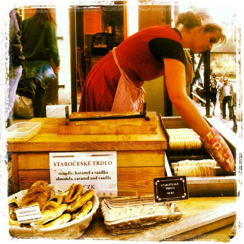 Mi ritrovo nella strada iniziale che mi porterà in piazza di Malà Strana, ma prima mi fermo a comprare una strana leccornia il cui odore mi sta tormentando da ore. Sapete quel profumo di croissant la mattina che ti attira come l’ape sul miele? Stessa cosa… Non ho pranzato ed è pomeriggio inoltrato. Inoltre la signora che lo vende è vestita in abiti medioevali e arrostisce allo spiedo una sorta di pasta che alla fine rimane dorata. Faccio qualche foto ma è più forte di me. La compro.