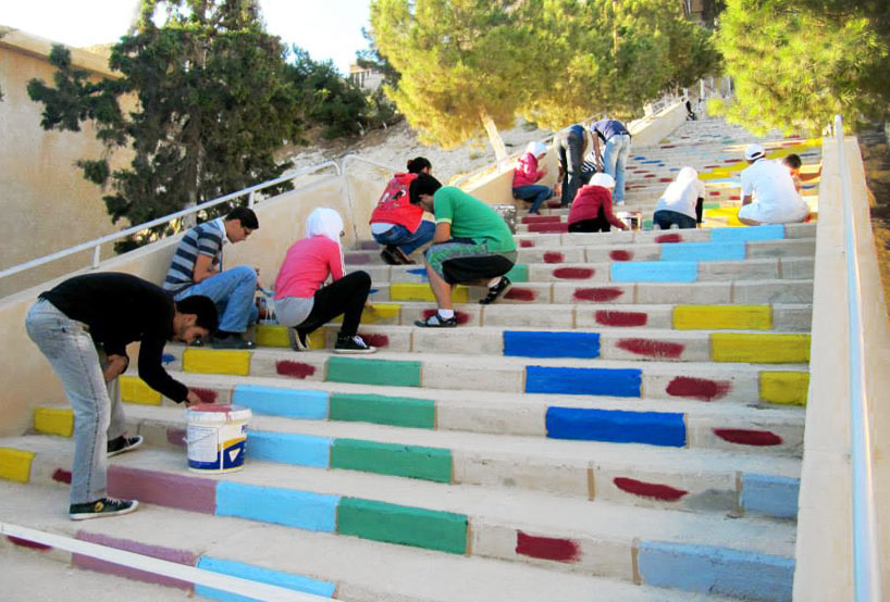 Published at 818 × 554 in Arte e curiosità dal mondo – La scala variopinta degli studenti siriani Jood