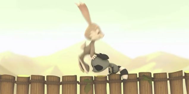 Ma il bello viene subito dopo, perché sul ponte salgono finalmente i due animaletti e si trovano nella stessa posizione dei primi due: uno di fronte all’altro e impossibilitati a proseguire. Come si comporteranno il procione e il coniglio? Ripeteranno lo stesso errore oppure troveranno una soluzione?
