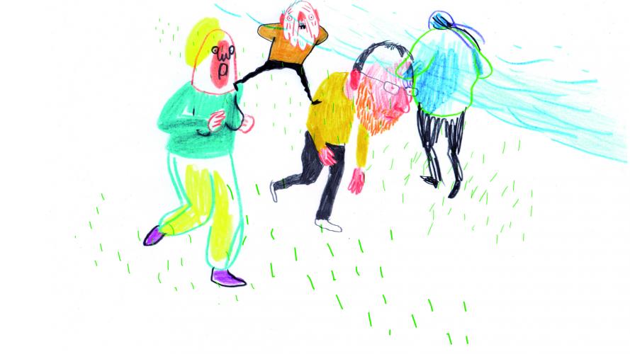 Partiamo dal Belgio con “Autur du Lac” (Noémie Marsily e Carl Roosens, 2013, 5′), un corto di animazione dai disegni molto primitivi e particolari (vd. foto) e dalle scene veloci e leggere. La musica è perfettamente integrata con le immagini. Mi fa sorridere più volte e il pezzo mi piace. Promosso!