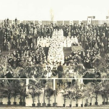 Credenti celebrano la messa di Pasqua al Municipal Stadium nel 1939