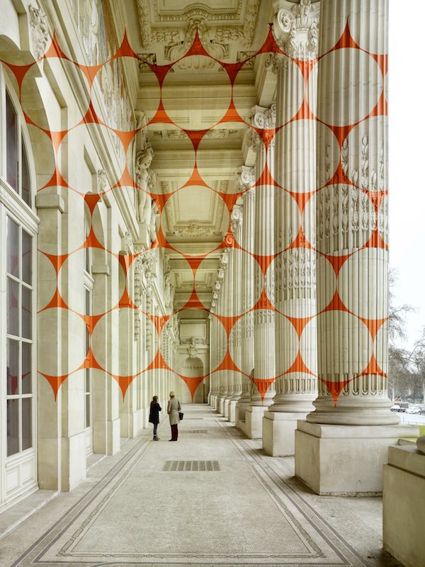 Francamente quando ho visto per la prima volta le opere dell’artista svizzero Felice Varini mi son chiesta cosa ci fosse di particolare e tale da produrre tanto clamore attorno alla sua arte. Ero convinta che esse fossero di natura digitale e non ne capivo esattamente il senso. Poi ho visto i video e le foto della loro realizzazione e sono rimasta a bocca aperta. Le applicazioni che egli crea su altre opere d’arte, singoli luoghi o interi quartieri sono vere. In poche parole, attraverso un uso sapiente della prospettiva, egli applica realmente i suoi adesivi colorati sulle superfici dei luoghi designati per ottenere le sue geometrie.