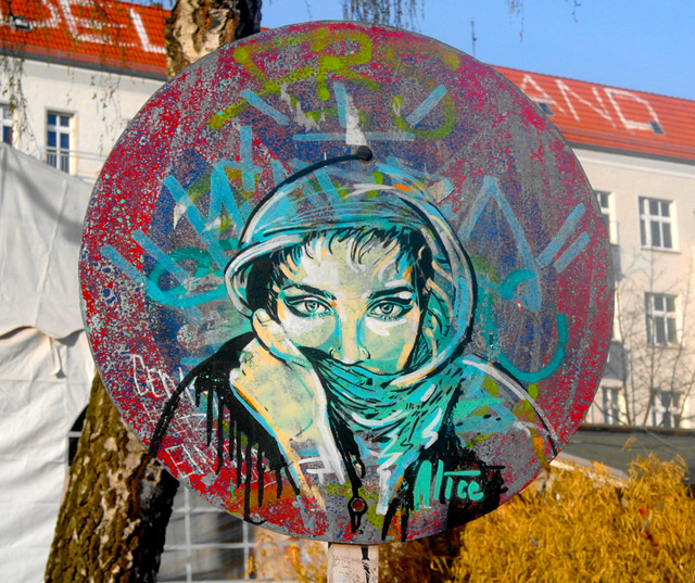 Alice PasquiniTratto spesso e deciso e colori a iosa sono i segni caratteristici dello stile della street artist, disegnatrice, scenografa e pittrice italiana Alice Pasquini, in arte AliCè. Di origini romane e classe 1980, Alice di è diplomata in pittura all’Accademia di Belle Arti di Roma per poi trasferirsi a Madrid dove si è specializzata in disegno d’animazione manuale per il cinema e televisione alla Scuola Ars Animation.