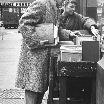 Paul Newman e Joanne Woodward fanno shopping di dischi a Parigi, fotografia di Gordon Parks, 1959