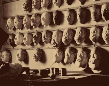 Un uomo crea maschere mortuarie per soldati morti nella Prima Guerra Mondiale, ca. 1918