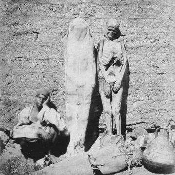 Uomo vende mummie in Egitto, 1875