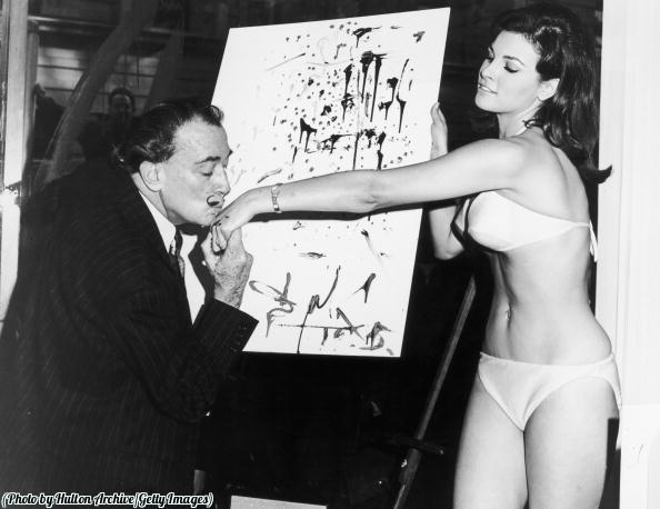 Salvador Dali bacia la mano di Raquel Welch dopo aver terminato il suo celebre ritratto, 1965