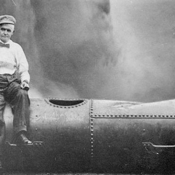 Cascate del Niagara – Bobby Leach con il bidone da lui usato nel tentativo del 1911