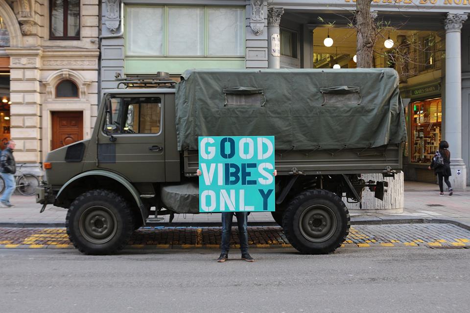“Bruxelles è piena di soldati a causa del terrorismo, questo è solo un messaggio “Good Vibes Only” (solo buone vibrazioni) che contiene la parola “OBEY” (obbedire), come se si trattasse di un obbligo…”
