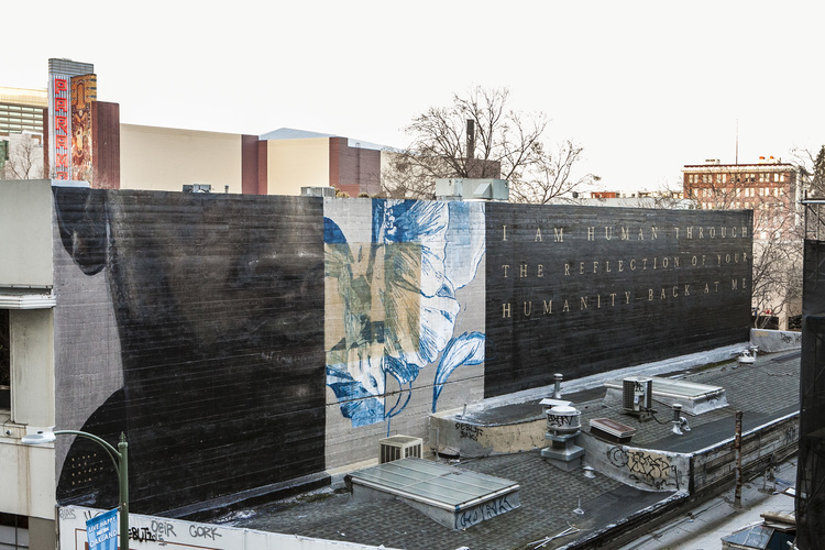 “Questo murale ha a che fare con la disuguaglianza e l’odio in cui il nostro mondo è assorbito. La nostra storia e il presente sono pieni di apartheid, pregiudizi, intolleranza, discriminazione, unilateralità, razzismo, settarismo, segregazione e ingiustizia. Quando impareremo che siamo tutti solo uno? non possiamo essere umani da soli. Tutto è collegato, noi siamo non solo fratelli e sorelle, noi siamo uno e lo stesso. Io sono te e tu sei me. La sofferenza di tutti e la gioia di tutti appartengono a tutti. Quando le nostre bandiere cadono i nostri cuori si collegheranno. Possano tutti essere felici e liberi dalla sofferenza.”