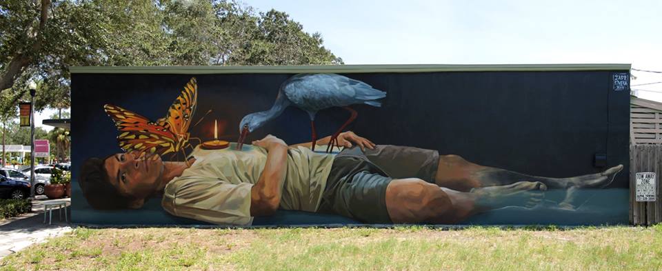 Saint Petersburg, Florida, USA: nuovo muro dello street artist peruviano Jade Rivera per il SHINE St. Petersburg Mural Festival.