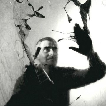 Alberto Burri al lavoro nella sua casa-studio, Grottarossa (Roma), 1963. Fotografia di Ugo Mulas