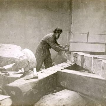Brancusi lavora sulla colonna infinita ADAGP / NMR G.Blot