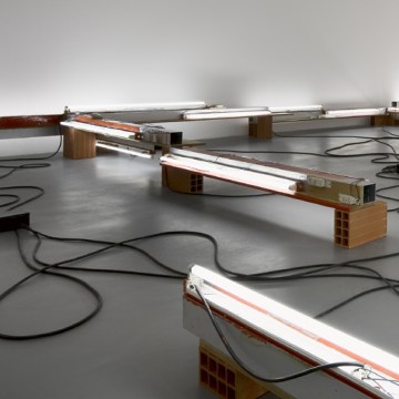 Pedro Cabrita Reis – À propos des lieux d’origine #1 (Paris) – 2005 laterizio, calcestruzzo, luce fluorescente, cavo elettrico, in alluminio, 51x935x740 cm