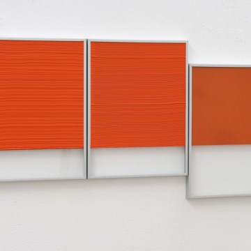 Pedro Cabrita Reis – Strömbly arancio (Triptych) – 2012, acrilico e smalto su vetro, cornice in alluminio (tre parti) 48,5 x 94,5 x 2 cm
