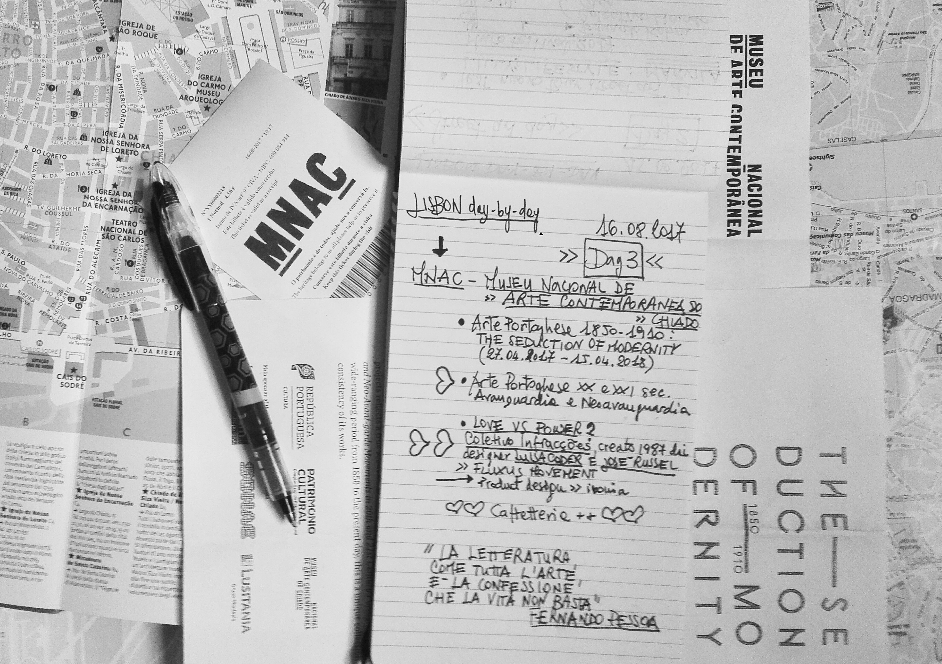 Cosa troverete: un ex convento distrutto dal terremoto convertito a museo d’arte contemporanea; il malcelato entusiasmo di una blogger in crisi d’astinenza da struttura museale in visita al suddetto museo; delle tizie nude che vogliono essere mangiate; Batman travestito da poltrona alata; Amore che canta la serenata a una Psiche sognante; una bicicletta col corpo d’aereo; corridoi infiniti da ospedale horror; un tizio che beve da una pozza d’acqua salmastra; Helena Almeida che dipinge le sue azioni fotografiche; un water con doccia annessa & more…