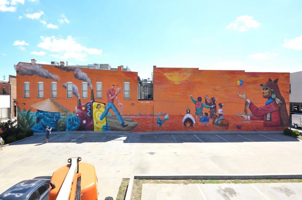 Fort Smith, Arkansas, USA: new piece collab by Mexican artists Saner and Ukrainian artist AEC (from Interesni Kazki duo) for The Unexpected.