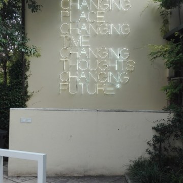 “Changing Place, Changing Time, Changing Thoughts, Changing Future” (2003) by Maurizio Nannucci @ Peggy Guggenheim Collection