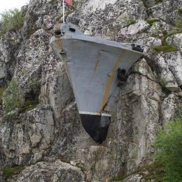 Nave militare russa inglobata in una montagna di pietra a Murmansk, Russia