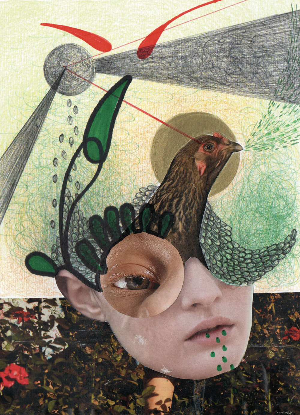 Inoltre l’uso di materiali “poveri” come carta, penne a sfera, pastelli, pennarelli, fili per cucire, collage, vuole dimostrare che se si vuole fare arte la mancanza di soldi non deve scoraggiare gli artisti.