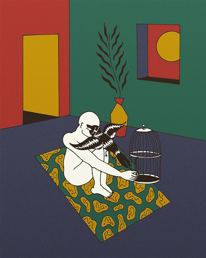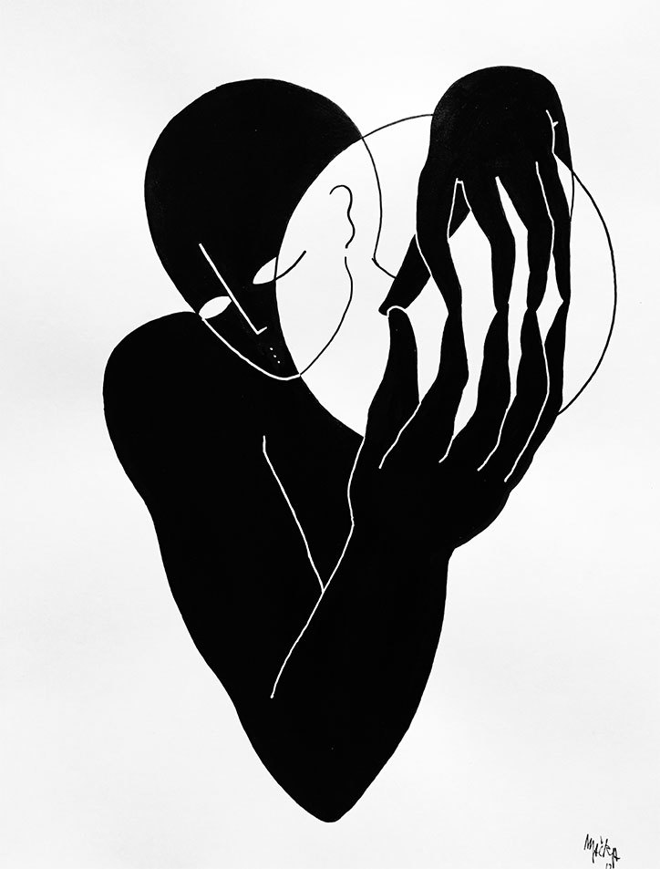 Con queste parole l’artista Léna Mačka descrive le sue illustrazioni animate da personaggi ambigui collocati in contesti astratti e cupi. Da una parte gli occhi chiusi, la mancanza di identità e le espressioni comunicano incertezza, dall’altra le atmosfere trasmettono un senso di pace e tranquillità che risulta quasi terapeutico. Tutto ciò è intenzionale, l’artista vuole provocare emozioni nello spettatore, gli occhi chiusi ad esempio