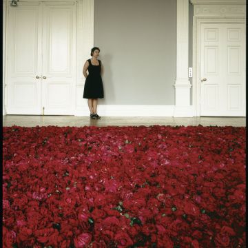 Anya Gallaccio, photographed with Red on Green at the ICA, July 1992. Photography by Edward Woodman