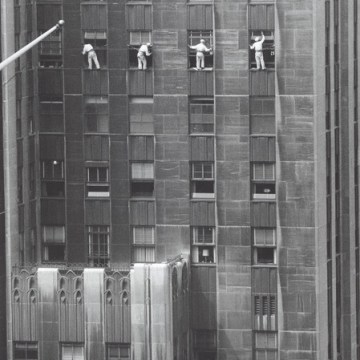 USA. New York City. 1958. Forty-eighth Street window washers.