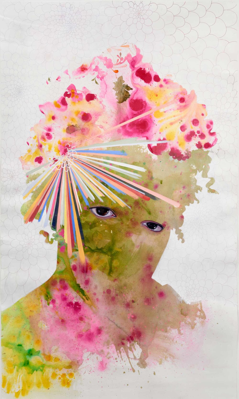 Firelei Báez – “To See Beyond It And To Access the Places That We Know Lie Outside Its Walls” (2015), Gouache and ink on paper, 84.5 x 50 inches (213.4 x 127 cm)