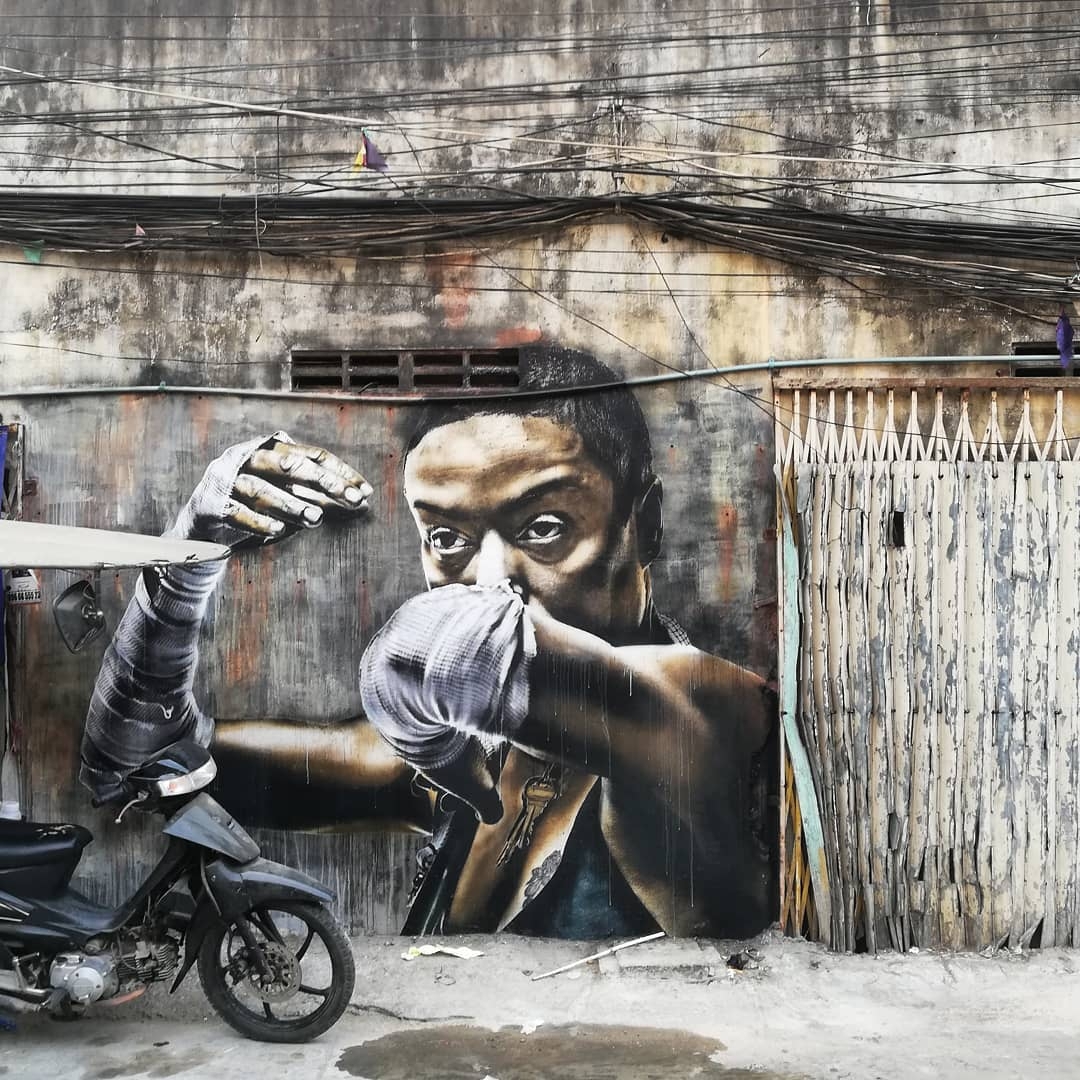 Phnom Penh, Cambodia: new mural by US artist Eddie Colla for Street 93 Festival curated by Phnom Penh Underground.