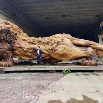 Giant lion carved from single tree trunk took 3 years to complete