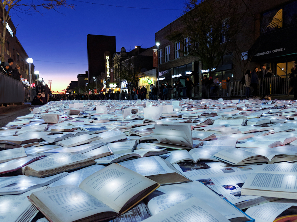 Published at 1000 × 750 in OperArt – “Literature vs Traffic” by Luzinterruptus @ Ann Arbor, USA