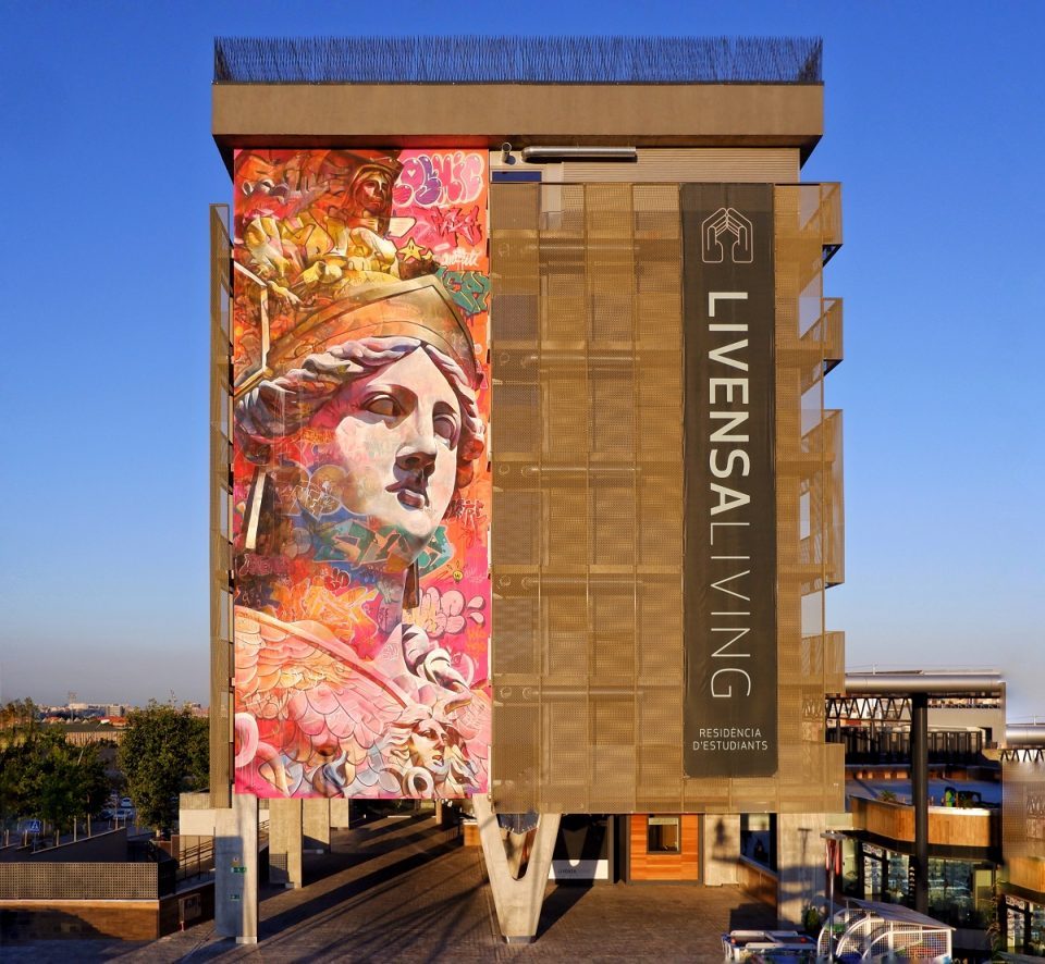 Barcelona, Spain: new mural by Spanish artist duo Pichi & Avo for Rebobinart Association on behalf of the real estate development company Temprano Capital Partners.