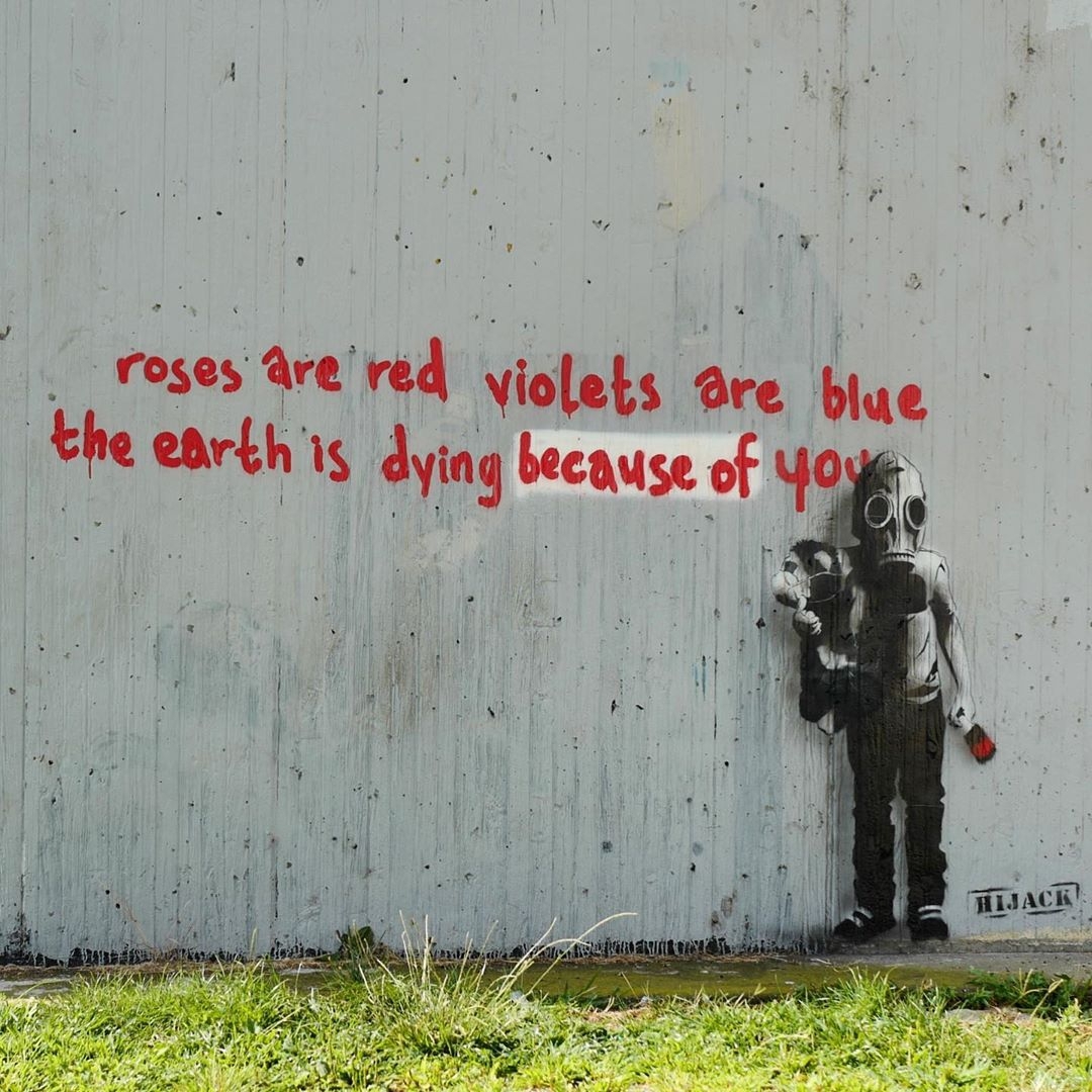 Title: “Roses are red, violets are blue, the earth is dying because of you”