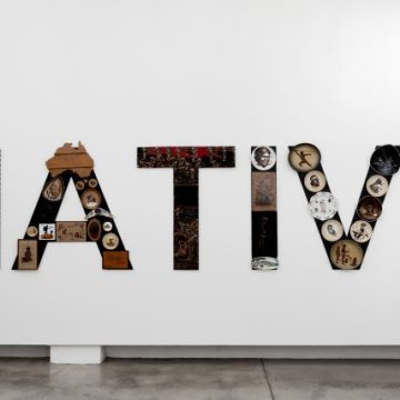 Tony Albert NATIVE, 2019, acrylic and found vintage objects applied to plastic-polyester, powder-coated aluminium, 120×550 cm, courtesy l’artista e PAC