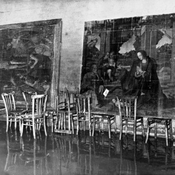 Una sala delle Gallerie degli Uffizi dopo l’alluvione di Firenze del 4 novembre, courtesy Touring Club Italiano