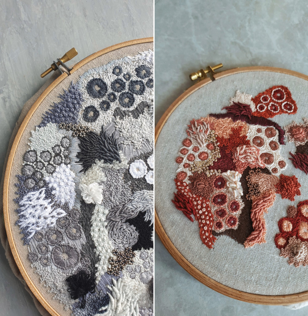 Published at 1280 × 1310 in Arte tessile – I cerchi da ricamo ispirati alla natura di Hannah Kwasnycia