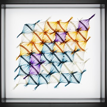 Elisabeth Picard. “Evolution” (2015), dyed zip-ties with plexi lightbox, 20.5 x 21.5 x 6 inches. Photo by Michel Dubreuil