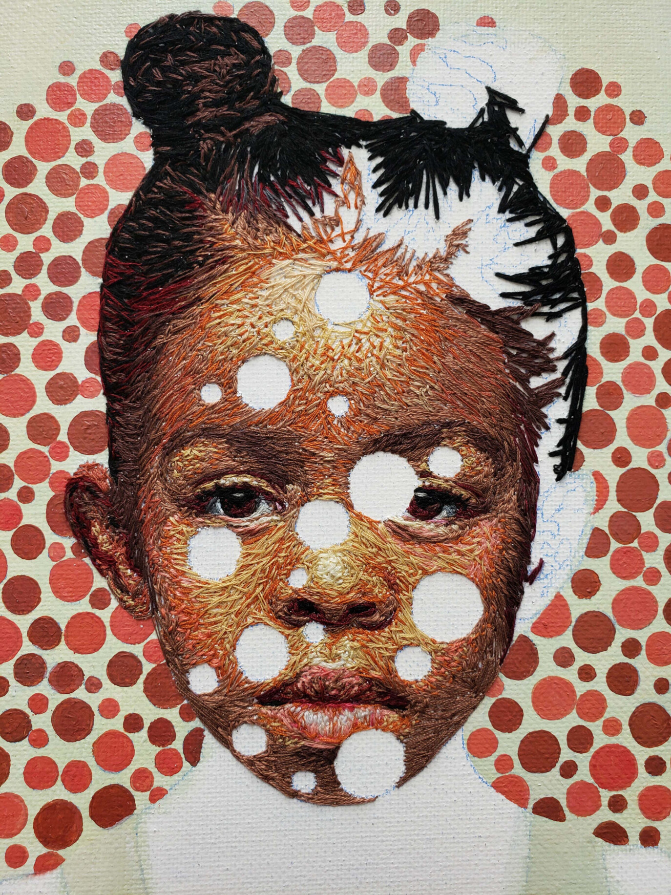 “Colorblind Target” by Nneka Jones (2019), ricamo a mano su tela, 8 x 10 pollici