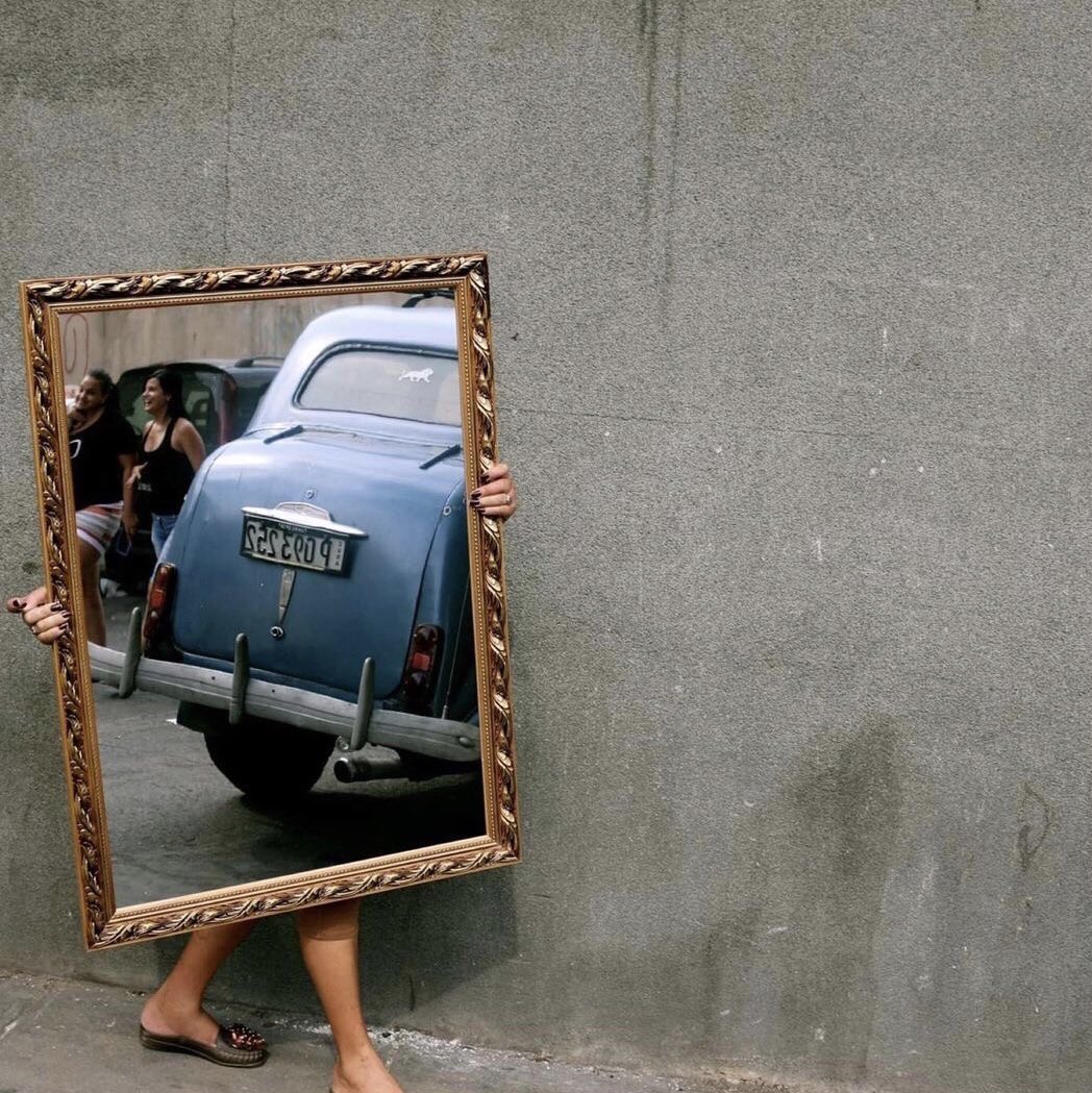 A Woman Carrying a Mirror down the Street in Havana, Cuba, 2016. Photography by Mark Underwood