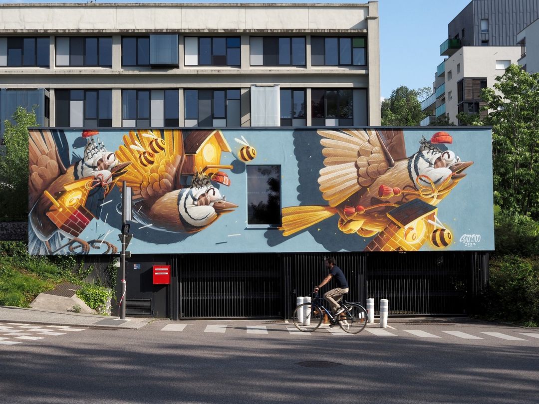 “Last month I had the chance to be invite by Art By Friends to paint a wall for the tour name “la virée”. This wall was special for me because it’s paint in Les Papeteries the big studio of animation with so much talents !”