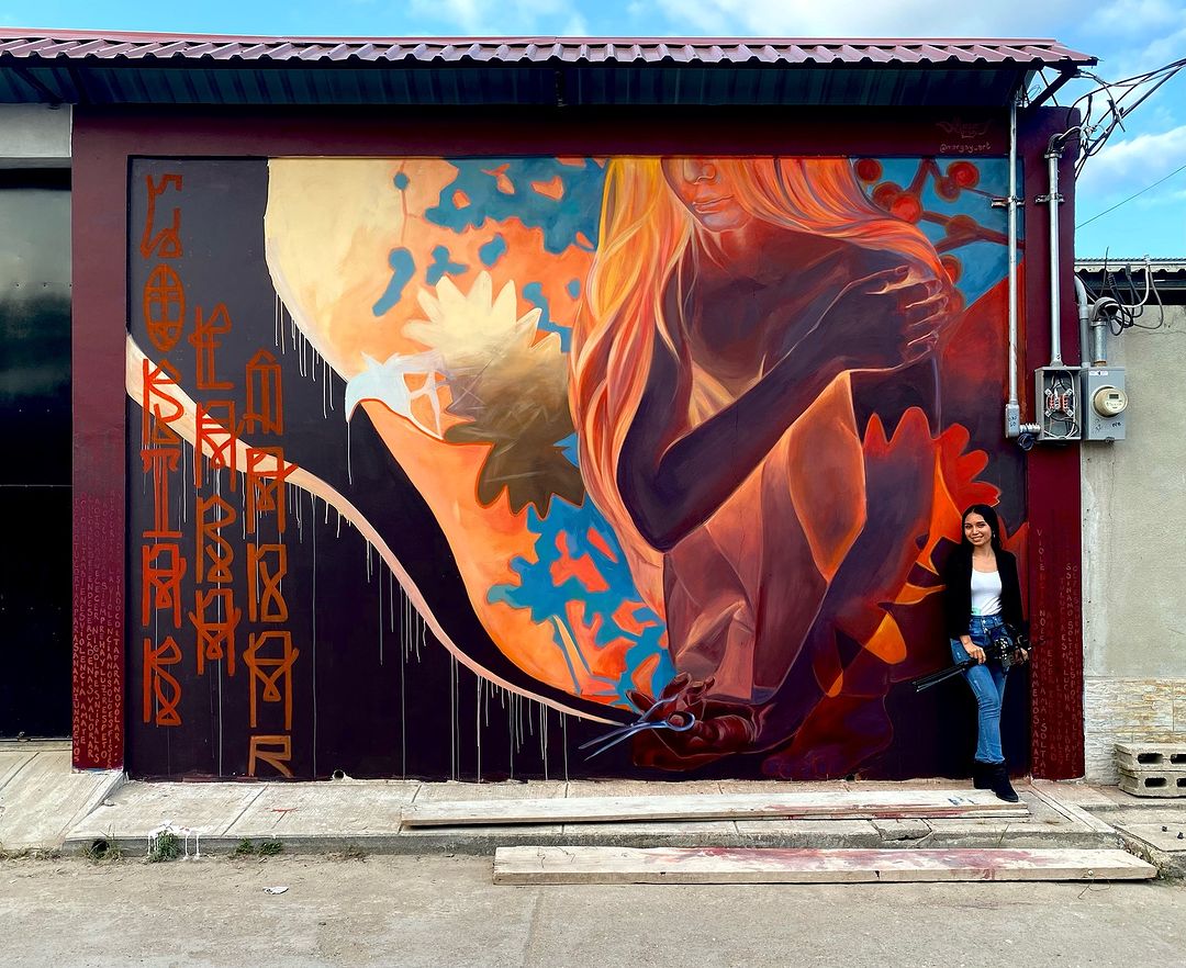 En la tercera semana de la « Caravana de Muralistas Migrantes », en San Marcos de Ocotepeque, en Honduras, quise tocar el ultimo tema « la prevención de la violencia sobre mujeres y niñas » .