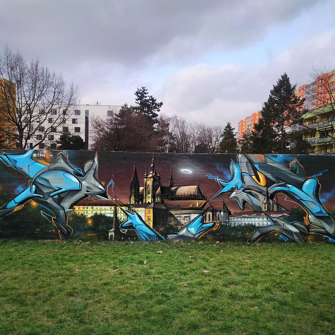 “Finished todays painting, for “Prague” City where i grow, thousand of nights in orange lights teach me a lot . thanks Praha”