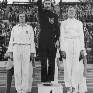 Dora Ratjen al centro sul podio degli Europei di Vienna 1938 prima di essere squalificata